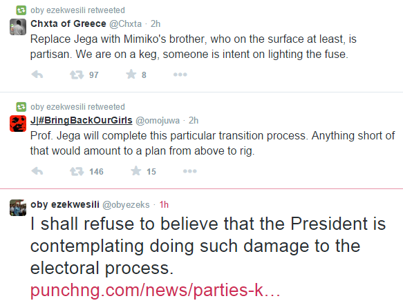 A lot of Nigerians are not happy and have been reacting to new reports about removing the INEC chairman, Professor Attahiru Jega before the re-scheduled elections take place. Some reports have even concluded that a replacement has been found for him. So many Nigerians are saying, if the reports are true that they will personally carry placards and hit the streets. Some say it only shows our president does not care. Continue below to see how Nigerians are reacting to the news.